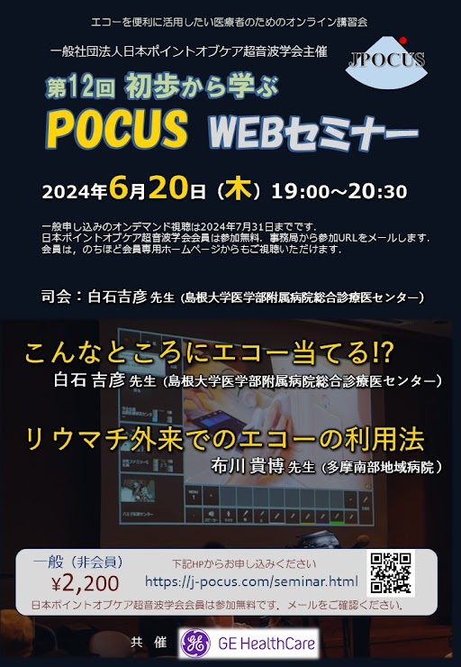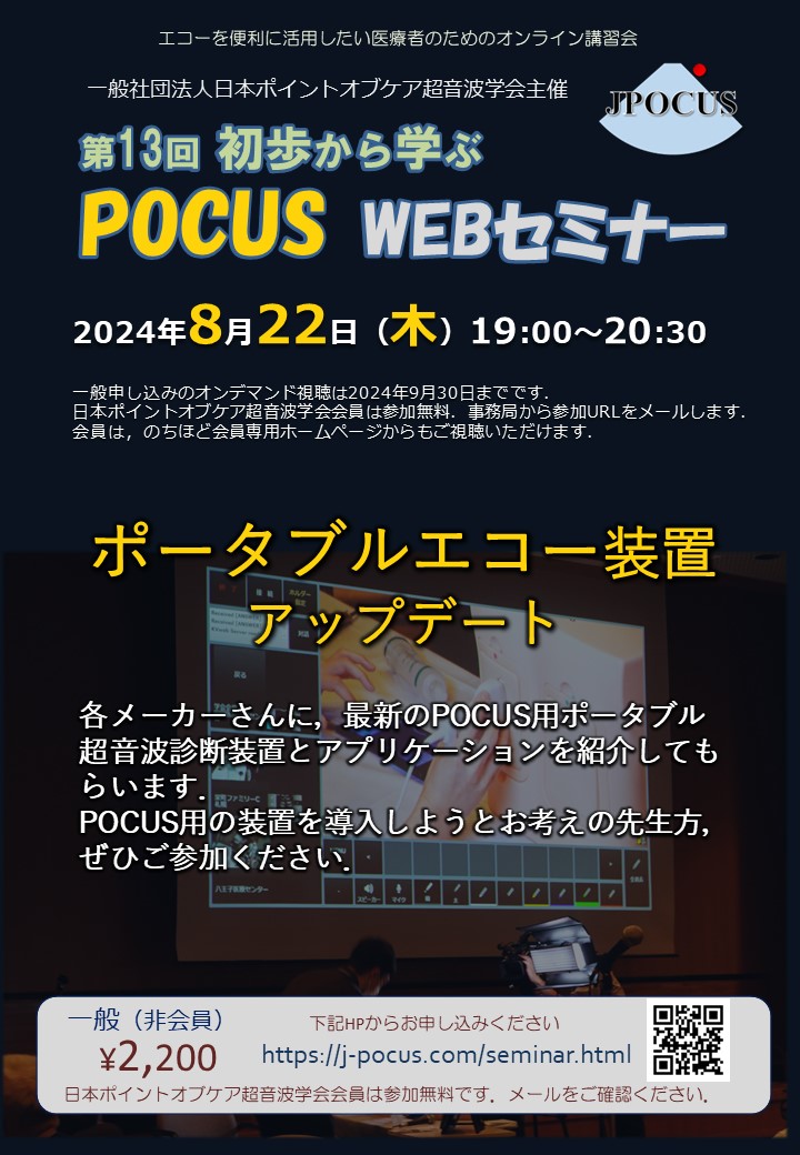 本セミナーは、一般社団法人日本ポイントオブケア超音波学会主催のウェブセミナーです。